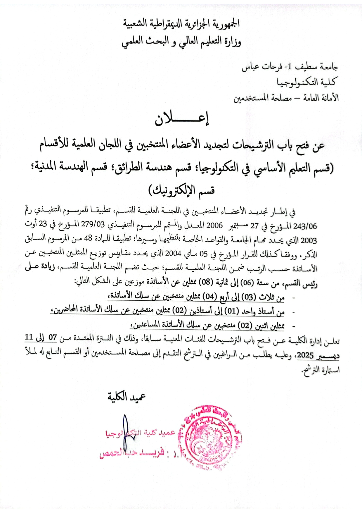 فتح باب الترشيحات لتجديد الاعضاء المنتخبين