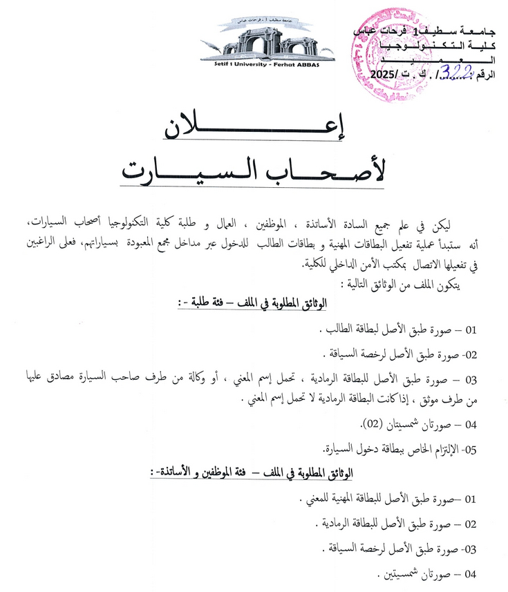 ملف تفعيل بطاقة الدخول بالسيارة إلى مجمع الكلية